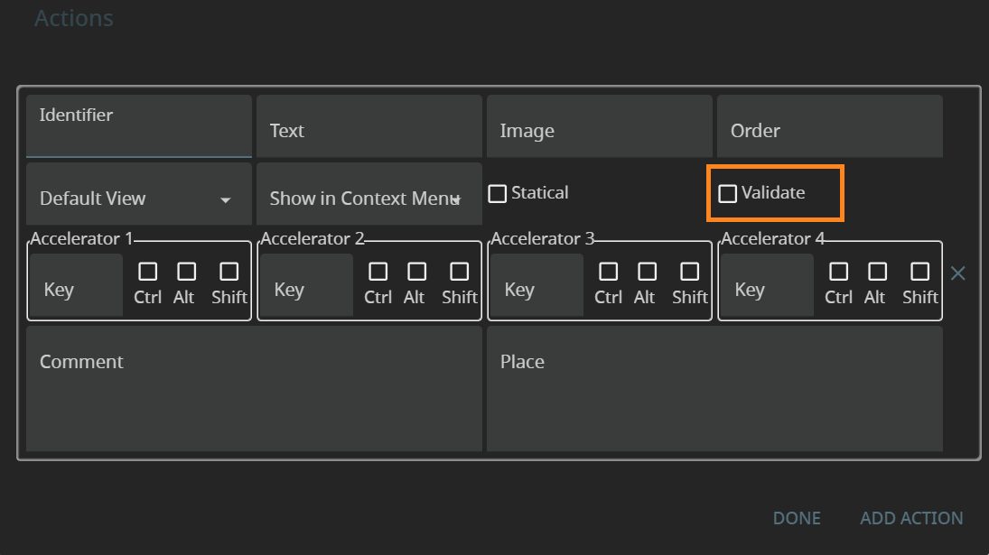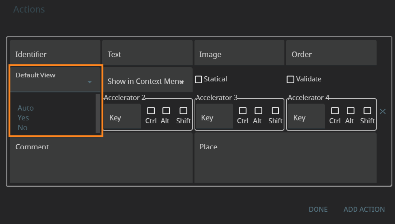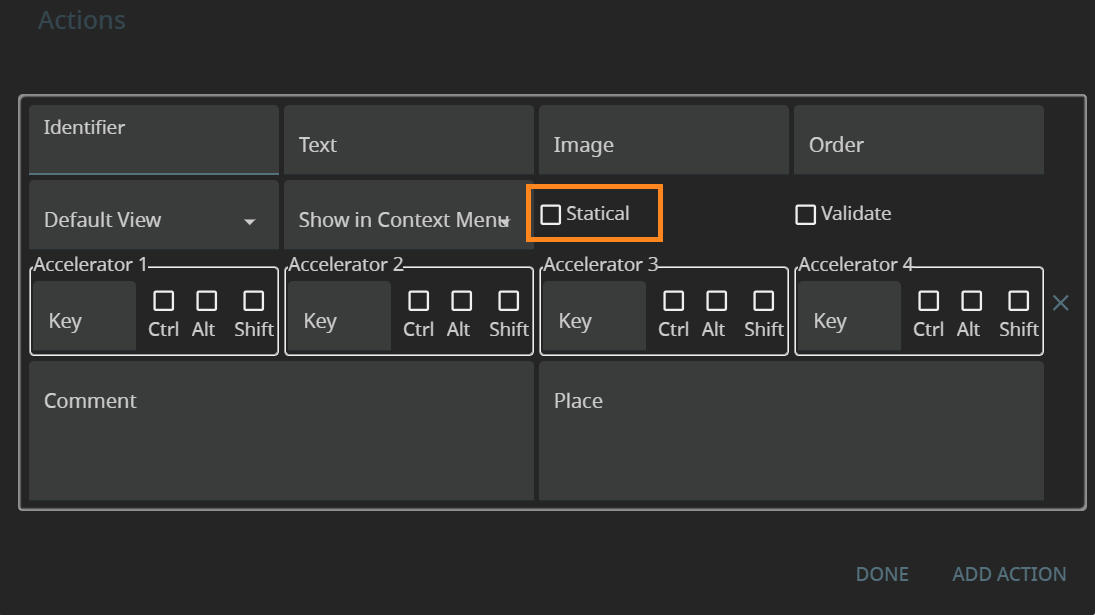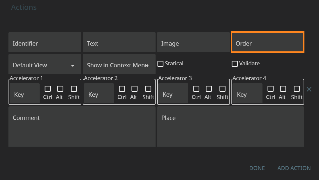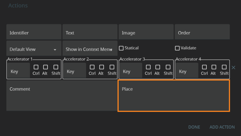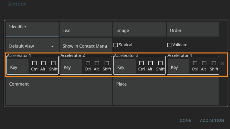 Accelerators defines the accelerator key(s) that will trigger the action at runtime.