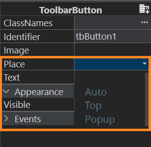 Only for ui.ToolbarButton – is set by the setPlace() method: