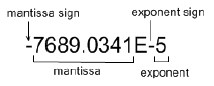 The data entered into a table column of FLOAT data type can differ from the data Querix 4GL will display, as the FLOAT data type stores only most significant digits. Such error occurs because the floating-point numbers are stored internally in binary numeration format. If you enter 1.1 into a table column of FLOAT data type, Querix 4GL will display it as 1.09999999. The exact floating-point binary representation of the decimal numeration value may require an infinite number of digits, whereas only a finite number of digits can be physically stored. So an approximate number is stored. Statements of Querix 4GL can specify FLOAT values as floating-point literals. A floating point literal has the following structure: (-)m.mE(-)e: ‘m’ represents a digit belonging to the mantissa, ‘e’ represents a digit belonging to the exponent, (-) are the mantissa and exponent signs that are optional. The omitted mantissa or exponent sign will be treated as positive by default. In the floating-point literals, you can use ‘E’ (either upper or lower case) as the exponent symbol.