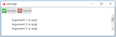 Together with arg_val(), num_args() is used to pass the specified parameter to the application - as in this simple program: