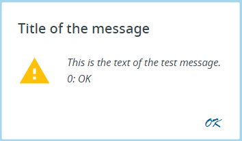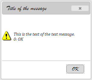 CALL fgl_message_box("Title of the message", "This is the text of the test message.", 0)
