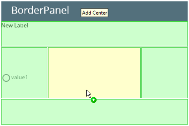 BorderPanel incorporates up to 5 elements (containers or widgets), placed along the panel borders and in the center.