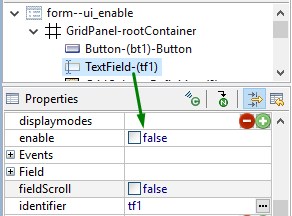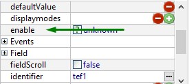 By default, enable is set implicitly to true and is displayed as unknown in the Properties view and absent from the form XML code:
