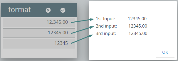 For example, for form fields with format="#,###.##", format="####.##", and format="####" you get: