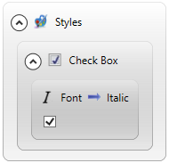 To apply a property to a checkbox, set its value in the user theme, directly or using filters.