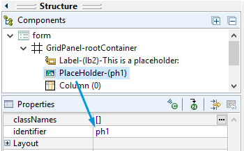 Step 4. The PlaceHolder is now added to your form, and you can see it in the Structure view.