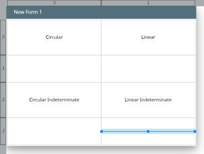 Next, we create a .fm2 form file and open it in the Form Builder, then add columns and rows to create a certain layout, and then place Labels and ProgressBars into the following layout: