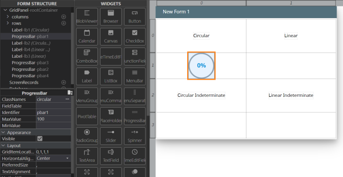 Step 1. Decide on a place in your form for the ProgressBar widget. Mind that the form must have at least one container (a Root Container) to be able to contain widgets.