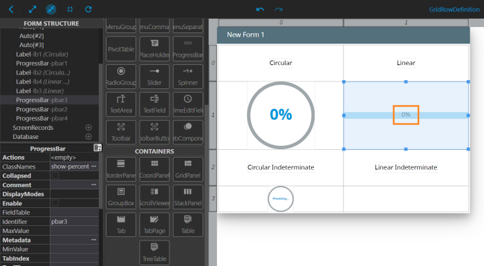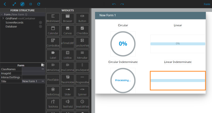 Step 2. In the Form Builder's Palette, find the ProgressBar widget.