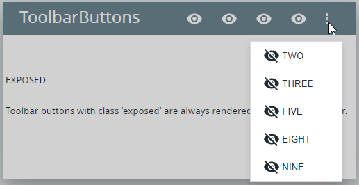 With MD Lycia, if a toolbar includes more than 6 toolbar buttons, these buttons are rendered to the drop-down menu.