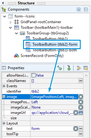 Step 3. The ToolbarButton is now added to your form, and you can see it in the Structure view.