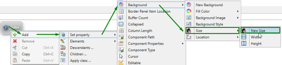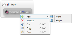 In Lycia Theme Designer, size of the element's background image is not specified directly to the Size property but to the placeholder called New Size. New Sizeis an optional ui object (=ui.Size) created to hold the dimensions - width and height - of the element's background image: