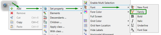 At runtime, you can use ui method - <var>.Family() - to change the font family for form elements.