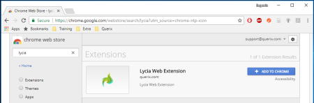 To be able to use LyciaWeb extension for Google Chrome, you have to add it first.