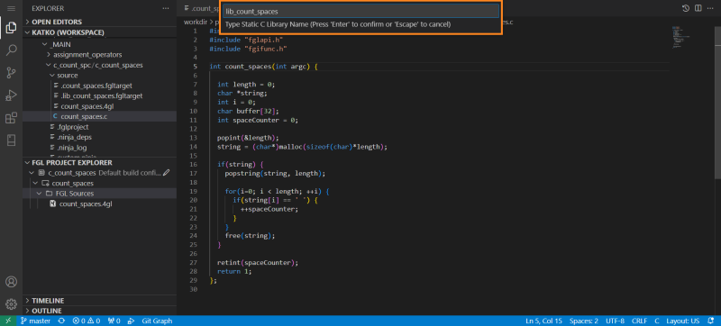 Your created library will now appear as a part of the project in FGL Project Explorer: