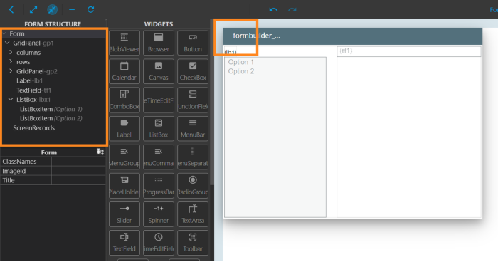 After that, the Form Builder will permanently remove the item. In our example, we have deleted the MenuBar, so it is no longer present in the form: