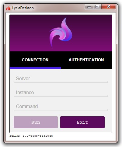 Connection dialog box allows the operator to enter the connection parameters for the server host name, instance and application file name. There is also an Authentication tab which is used for the same purpose.
