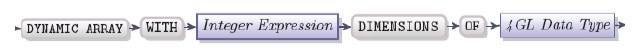 DYNAMIC ARRAY data type works the same way as ARRAY data type, but it has some additional features. Use the following syntax to declare a single-dimensional dynamic array of variables: