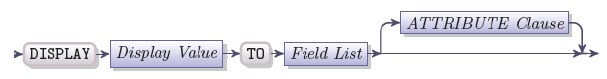 If an ATTRIBUTE clause is present within the DISPLAY statement, the attributes will be applied to all the fields specified in the TO clause, or implied by the BY NAME clause.
