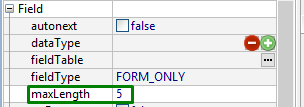By default, maxLength is not specified and is absent from the form and theme XML codes. The property value will appear in the form and theme XML codes only once it is specified.