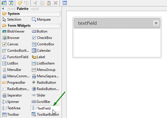 Select the place in the form where you want to put the text field (in the screenshot below, we choose a cell in a Grid panel):