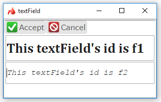 <?xml version="1.0" encoding="utf-8"?> <StyleSheet xmlns="http://querix.com"> <ElementFilter ElementName="TextField"> <StyleSheet> <ElementIdFilter Identifier="f1"> <StyleSheet> <DoStyleAction> <SetProperty> <PropertyPath> <PropertyName>Font</PropertyName> </PropertyPath> <PropertyValue type="Font" Bold="True" FontSize="20"> <Family> <Name>Cambria</Name> </Family> </PropertyValue> </SetProperty> </DoStyleAction> </StyleSheet> </ElementIdFilter> <ElementIdFilter Identifier="f2"> <StyleSheet> <DoStyleAction> <SetProperty> <PropertyPath> <PropertyName>Font</PropertyName> </PropertyPath> <PropertyValue type="Font" Italic="True" FontSize="12"> <Family> <Name>Courier New</Name> </Family> </PropertyValue> </SetProperty> </DoStyleAction> </StyleSheet> </ElementIdFilter> </StyleSheet> </ElementFilter> </StyleSheet> |