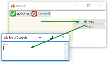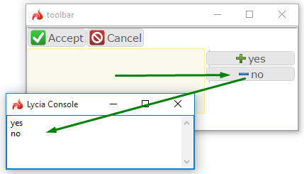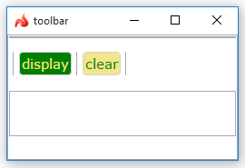 Toolbar with 2 toolbar buttons and a separator inserted in a Grid panel as seen in Lycia Form Designer |