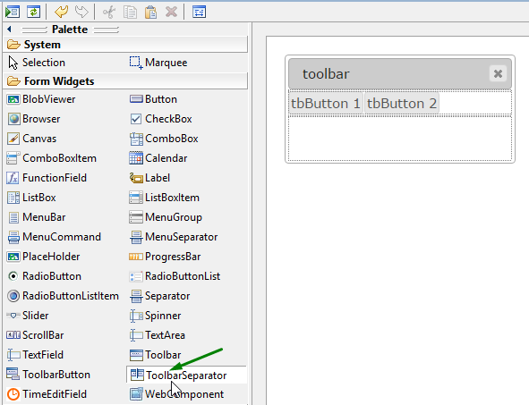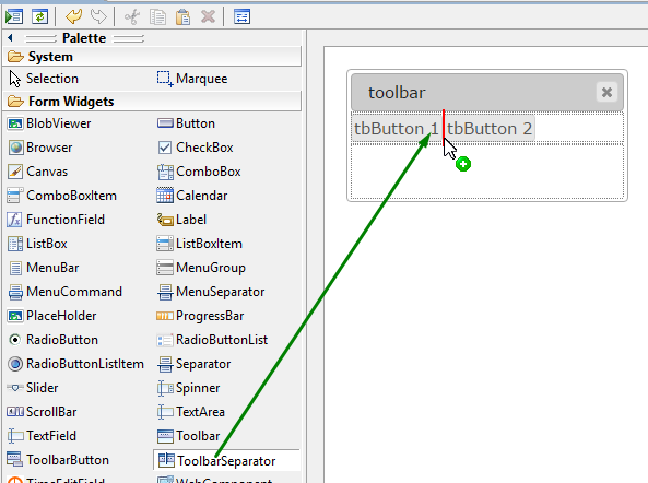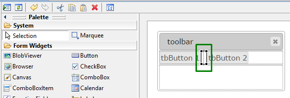 Left-click to add a toolbar separator to the form: