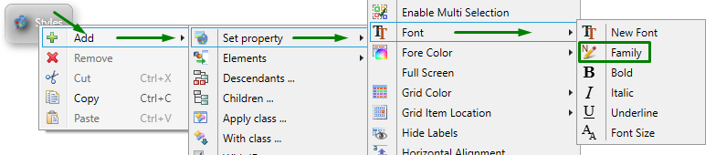 Family specifies the font family of the displayed or input to window elements, containers, and widgets.