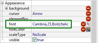 In Lycia Form Designer, there is one font property which allows specifying all font characteristics.