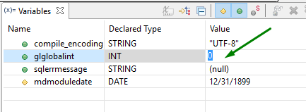 To change the value of a variable, click the necessary cell in the variable list and enter the new value in the field: