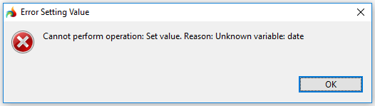 If you enter a value that is not compatible with the data type of the selected variable, an error dialog will appear: