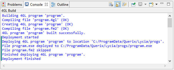 By checking the third option - Show keywords warnings, - you tell LyciaStudio to display warnings that keywords were used improperly in your 4gl code on the console: