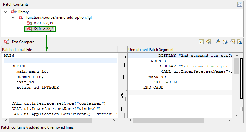 After you press Finish, the patch is created and can be transferred the patched project. |