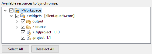 After you press Finish, the resources in your local workspace will be synchronized with their remote versions. |