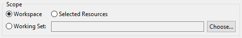 Select the resource scope for the synchronization - Workspace, Selected Resources, or Working Set: