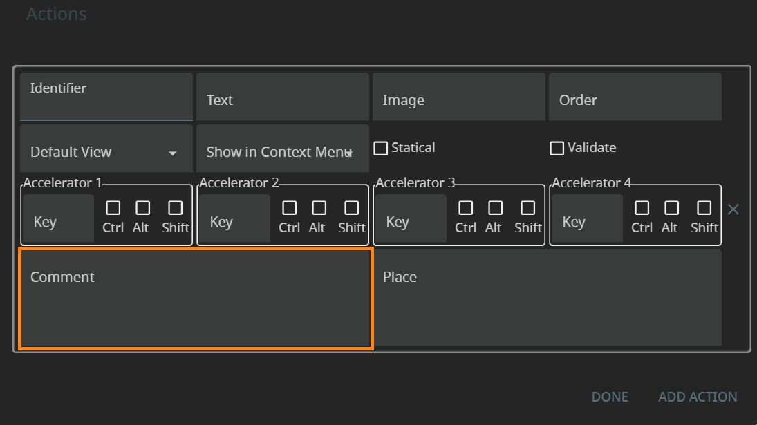 Accelerators defines the accelerator key(s) that will trigger the action at runtime.