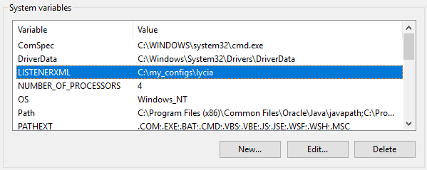 If you have other custom configuration files besides listener.xml, you must set the path to their location in LYCIA_CONFIG_PATH.