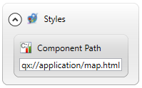 <StyleSheet xmlns="http://querix.com"> <DoStyleAction> <SetProperty> <PropertyPath> <PropertyName>ComponentPath</PropertyName> </PropertyPath> <PropertyValue>qx://application/map.html</PropertyValue> </SetProperty> </DoStyleAction> </StyleSheet> |