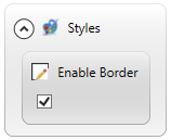 <StyleSheet xmlns="http://querix.com"> <DoStyleAction> <SetProperty> <PropertyPath> <PropertyName>EnableBorder</PropertyName> </PropertyPath> </SetProperty> </DoStyleAction> </StyleSheet> |