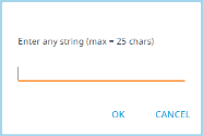 CALL fgl_winprompt(5, 5, "Enter any string (max = 25 chars)", "Your input", NULL, 0)