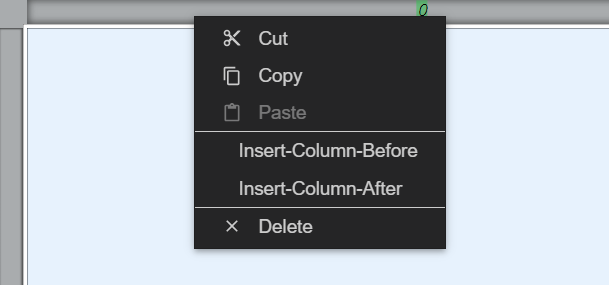 Insert Column After/Insert Row Below: inserts a new column or row before the selected one.