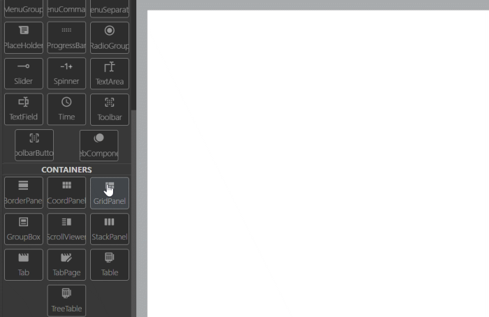 Step 1. Choose a GridPanel from the form containers in Palette.