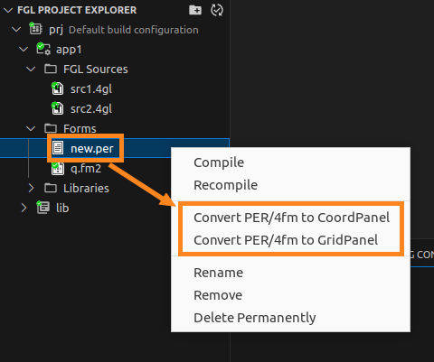 In LVSCE, there are two options for converting .per forms into .fm2 - Convert to CoordPanel and Convert to GridPanel: