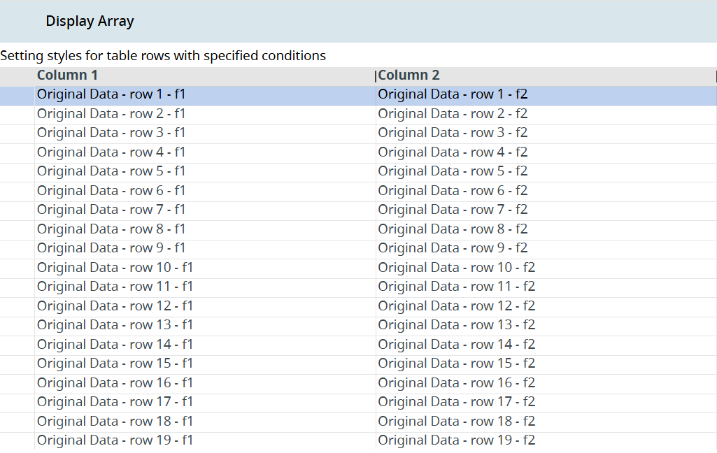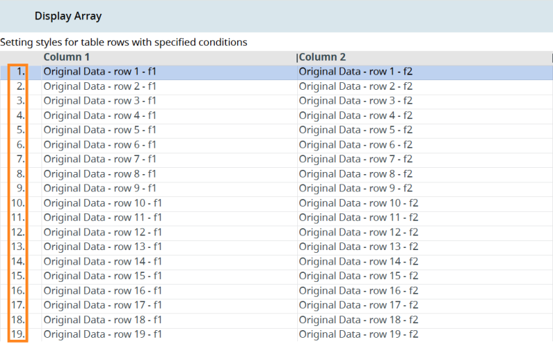 You can assign ordinal numbers to the table rows (except for the header row). To do that, open the Form Builder, select the Table in the Design Area or the Form Structure, and add the row-numbering class in the ClassNames property. Rebuild your application, deploy it, and run. At runtime, it will display the row numbering: