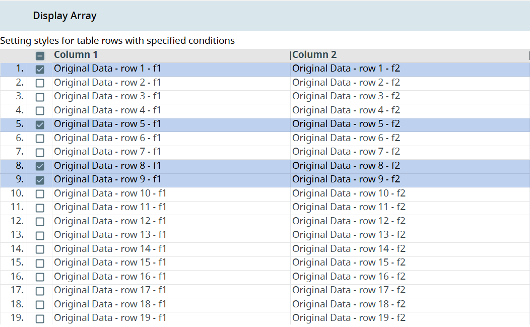 Build, deploy, and run your application. As a result, the selection column will appear in the left part of the table, ready for multi-selection. Click the checkboxes to select rows:
