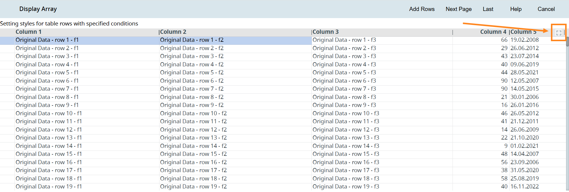 The table can be opened in a full-screen mode by clicking the Full Screen button in the upper-right corner of the table, or right-clicking the table and selecting the Full Screen option, in that popup menu: