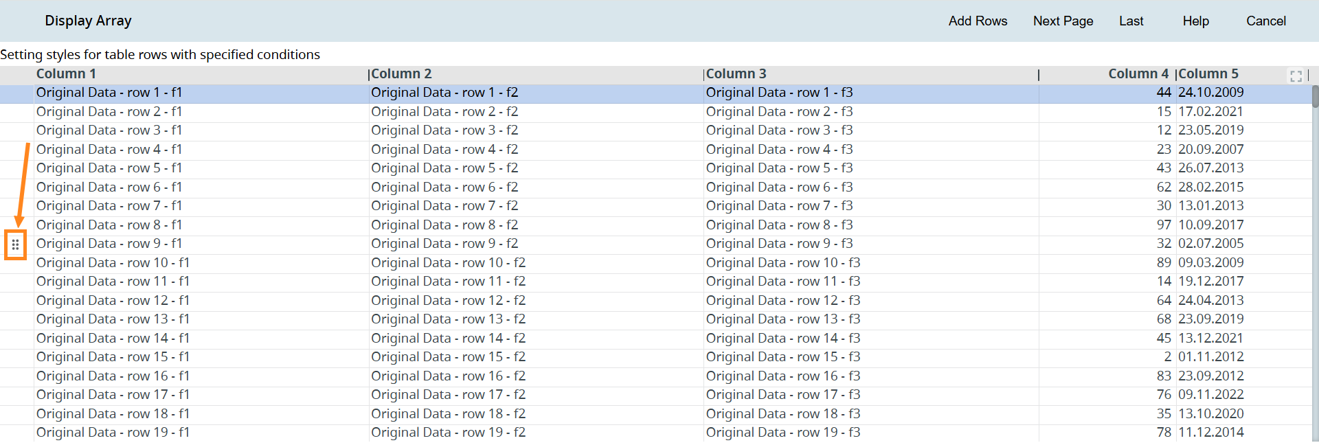 To rearrange the order of columns, drag a column and drop it at the necessary place (between two columns or onto an existing column; in the latter case, the dropped column will be placed before the column that was under):
