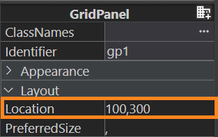Location identifies the object top left corner X and Y coordinates (in pixels) within a parent CoordPanel container (available only for containers nested within a Coord Panel)