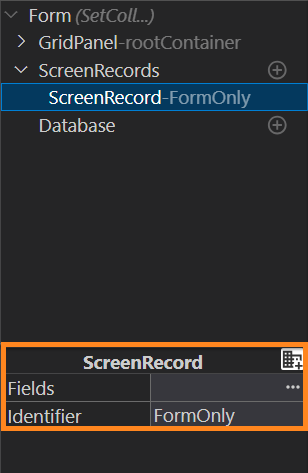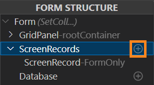 To add a new screen record, click the Add button next to the ScreenRecords group name in the Form Structure.